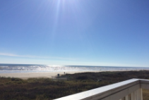 Sat. – Wed. Dec. 2-6: Beautiful sunny weather. In the high 60s, breezy and awesome walking on the beach. Spent most of the day on the deck listening to the waves. Morning coffee and evening beer. Joe set up his Bluetooth speakers and we listened to his ecliptic play list through the open windows. The dogs settled in, getting used to the new arrangements with some reluctance. It seems what looks like a lawn of scrubby grass is actually a mine field for dog feet (or bare human feet too). Hogan yipped and began limping within seconds of his first foray to potty in the yard. I checked his paw and had to remove a wicked tiny sand burr from between his pads. So for the remainder of our stay, all bathroom trips with the dogs had to be down the road or over the muddy path through the dunes to the beach.