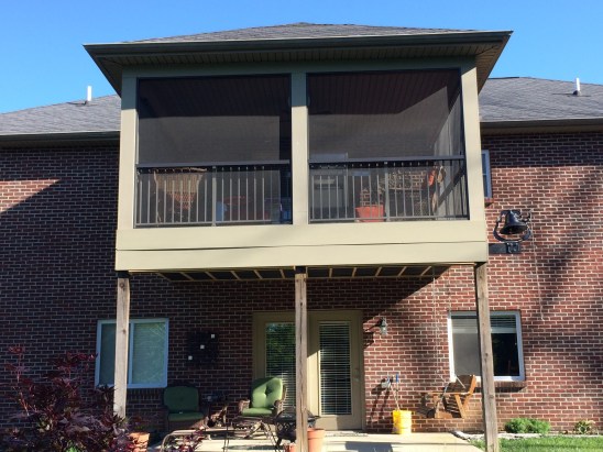 In March, my birthday month, Joe created my birthday present. He spent two weeks working outside on cold windy days to construct what he dubbed “Ginger’s Birdhouse” “The best birthday present ever,” is what I called it. He used a kit purchased online and converted our covered back deck into a screened-in porch. He cut and secured the bronze anodized aluminum frames around the parameter and then, with me supplying the measured and cut screen sections, he completed the job by rolling the screen into the pre-cut groves in the aluminum with a special tool. But this is not all he did. Not satisfied that this new area was completely and hermetically sealed he stapled strips of screen, which I again measured and cut, on the underside of the wood slatted floor. When completed the room was the opposite of an aviary, meant to keep winged creatures out not in.