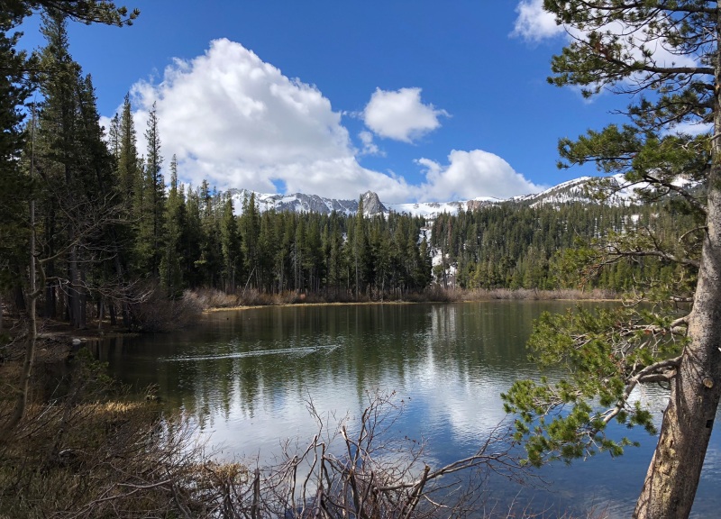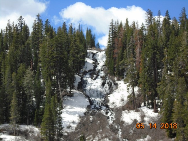 Day 6, Mon. May 14: I’m glad we all are in agreement that today we will rest, no driving anywhere. We’re all going to chill in this beautiful resort nestled in a pine forest by a lake overseen by mountains on three sides. In the 30s when we got up this morning, but it had crept up to the 40s by 9 am when we were walking back from our “left much to be desired” breakfast in the lodge; cereal, pastries, bagels, juice and coffee. But I shouldn’t complain, since all I ever eat at home is cold cereal.