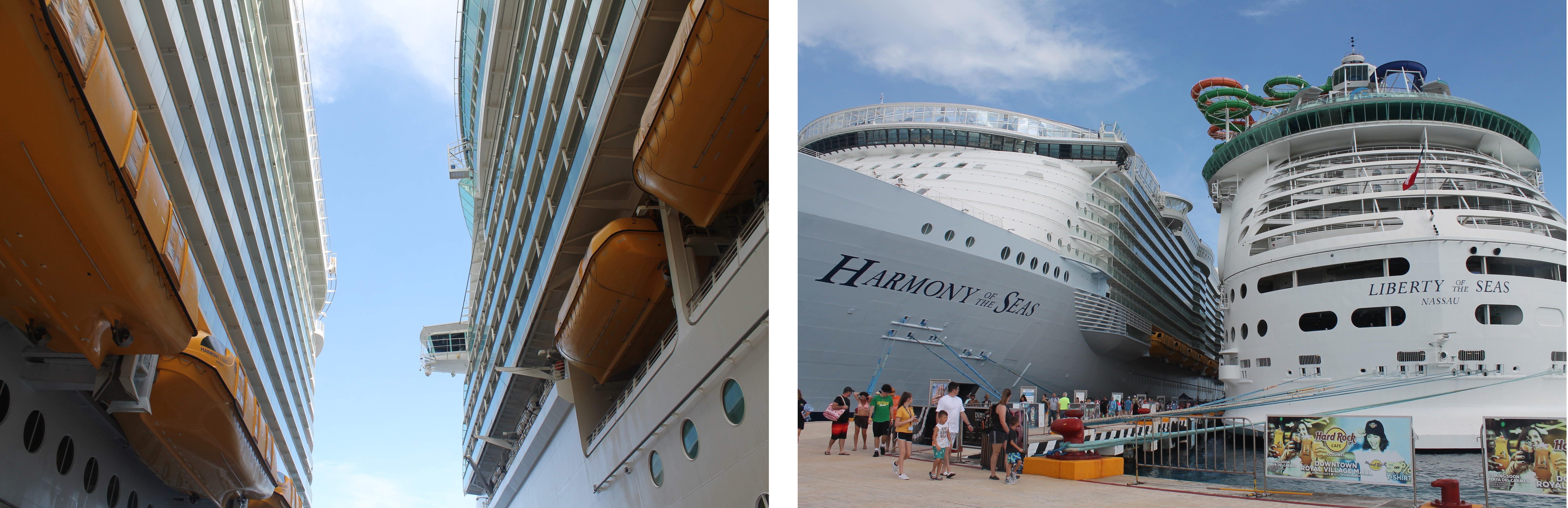 Afterward we went with Rudy to their room on Deck 7, #7202. Their room is front center. We walked the whole length of the ship, stern to bow, along the narrow corridors of Deck 7. Nothing but rows of numbered doors, on both sides. The inside cabins had a view of the promenade deck below. The Zepeda’s room does not have a balcony, but it is larger than ours and they have a big porthole window right over their bed, with a view of sky and sea and the helipad below, on Deck 4.